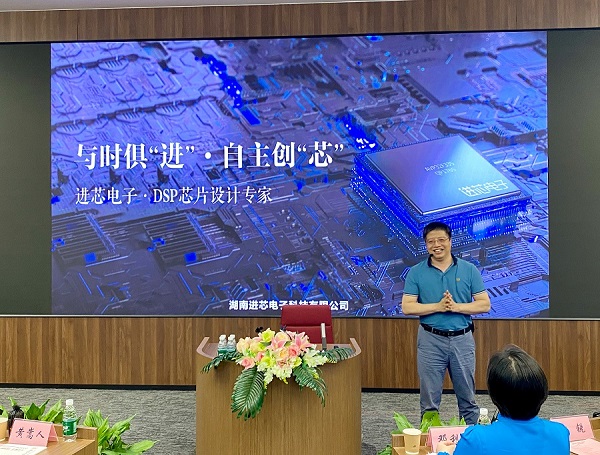 大会伊始,湖南进芯电子科技有限公司董事长黄嵩人发表致辞。他详细介绍了进芯电子近年来在国产DSP芯片设计行业做出的成绩与贡献,同时表示培养高新技术人才一直是公司的重要关注点之一,进芯奖学金的设立是对感激母校培养的真挚表达,也是期望通过培养下一代为集成电路行业和国家发展贡献出一份力量。