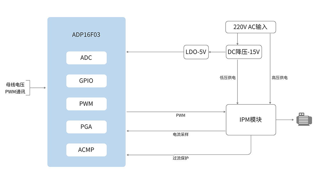 该方案采用精准的转数追踪算法,支持顺逆风启动;使用预定位切闭环的启动方式保,证启动更加平顺使用自研算法方案,让电机控制过程更加平稳。