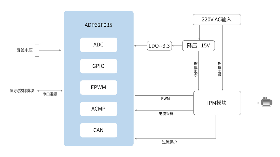 该方案无感FOC变频控制,速度稳定精度高,低速大力矩,高速转速高可破壁。